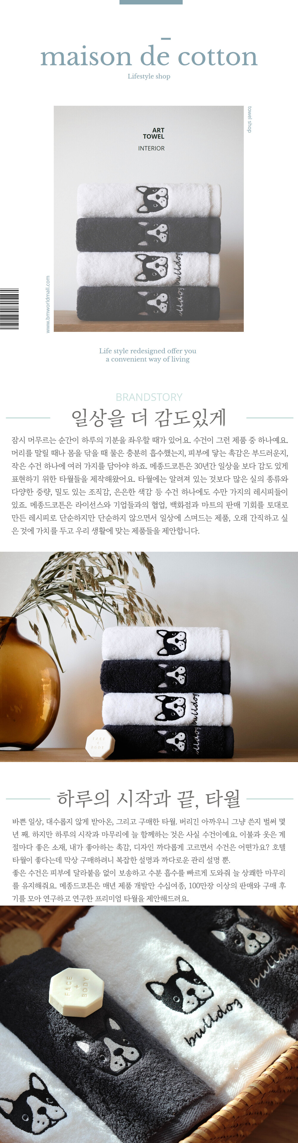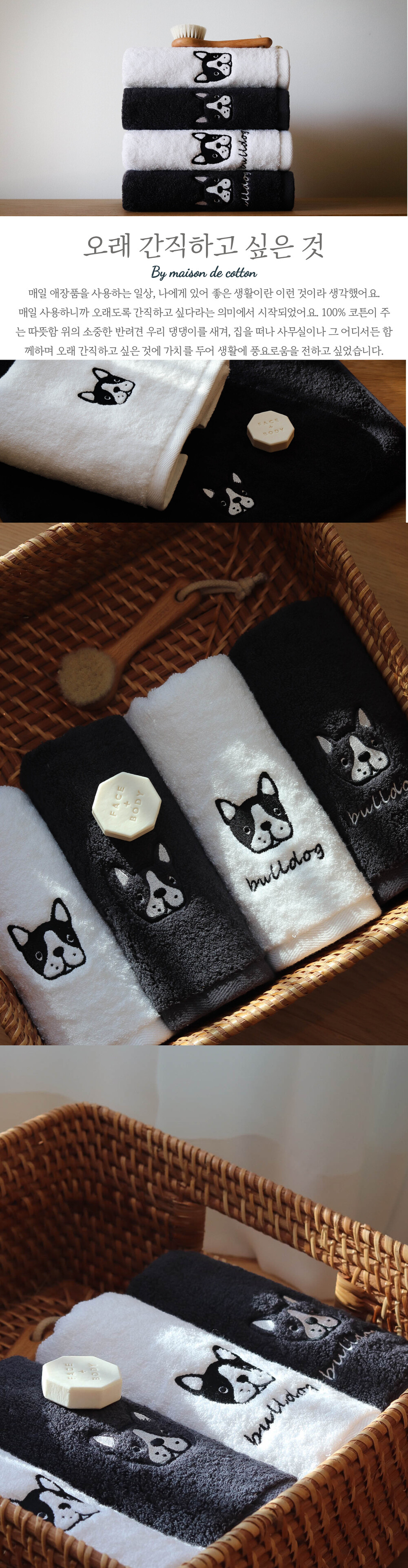 [메종드코튼] 마이펫 프렌치불독 호텔타올 1매 다크그레이