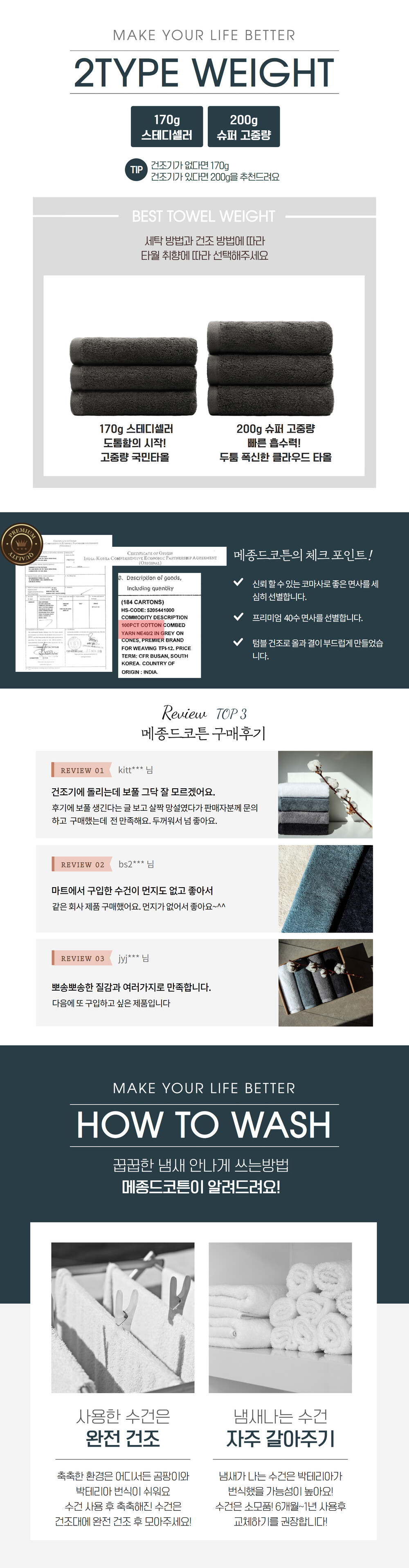 1. 수건의 컬러 선택