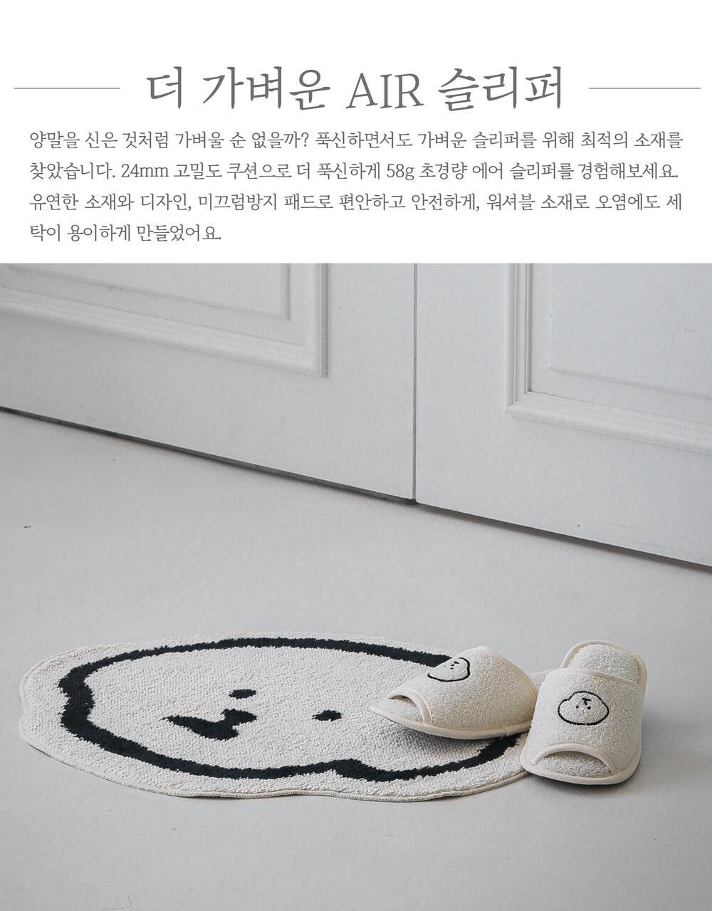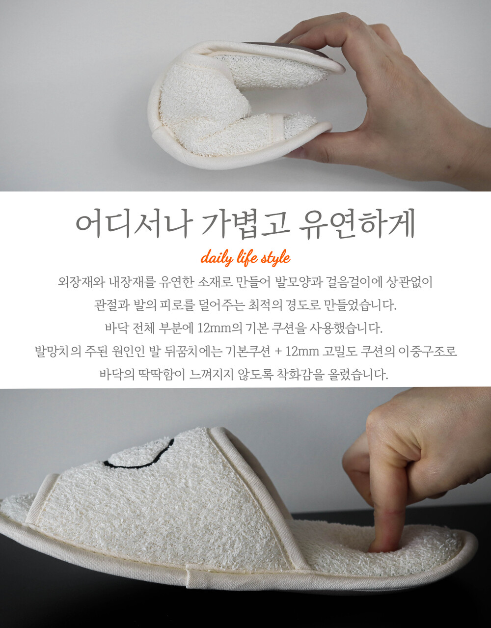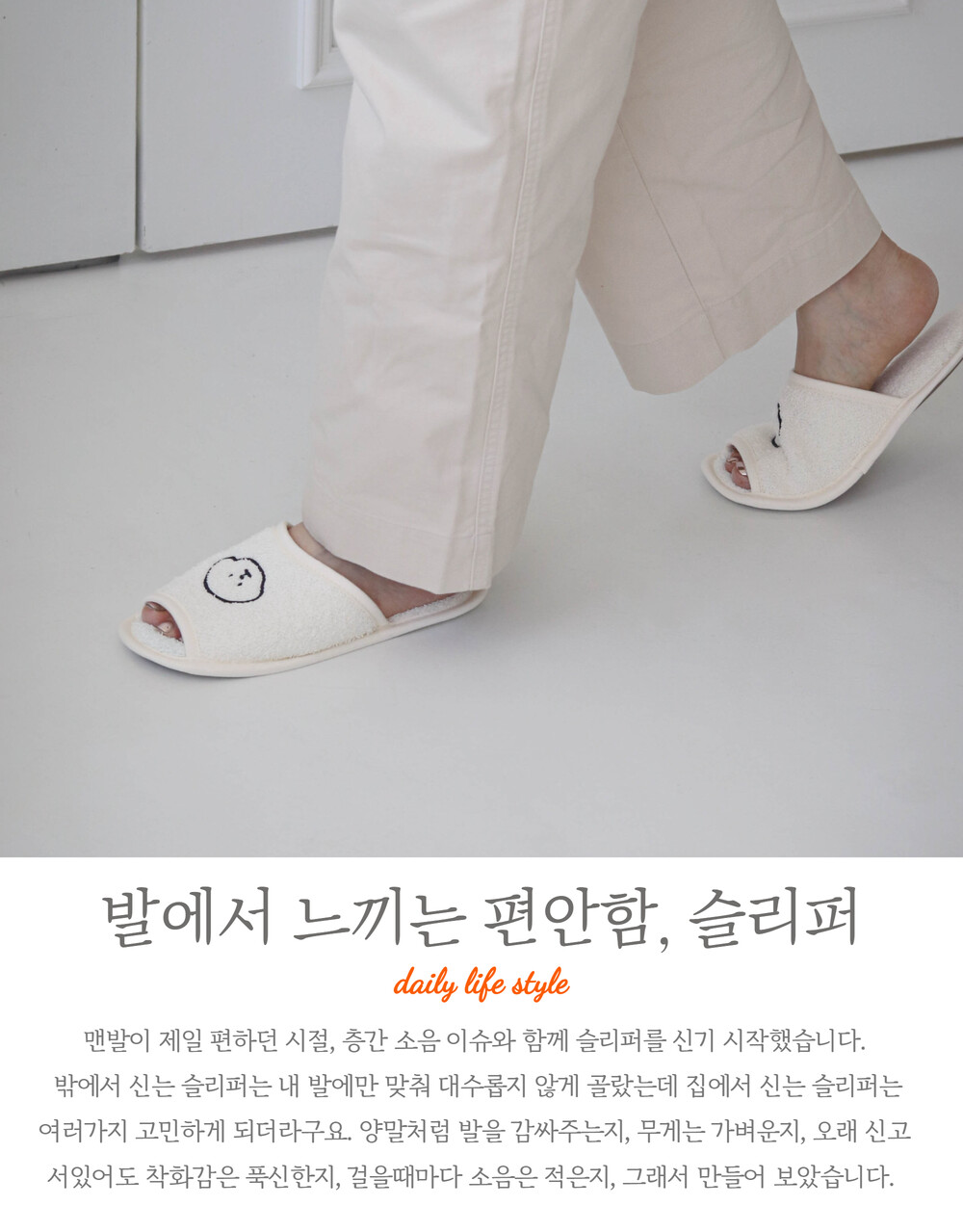 부들부들 우리집 강아지를 닮은 부클 소재로 더 따뜻하게, 푹신하면서도 가벼운 슬리퍼를 위해 최적의 소재를 찾았습니다. 24mm 고밀도 쿠션의 부클 슬리퍼를 경험해보세요.