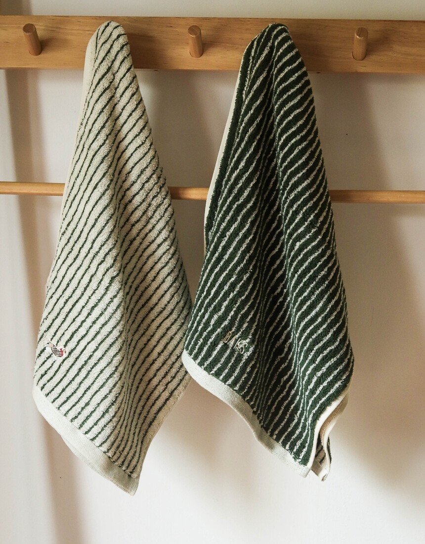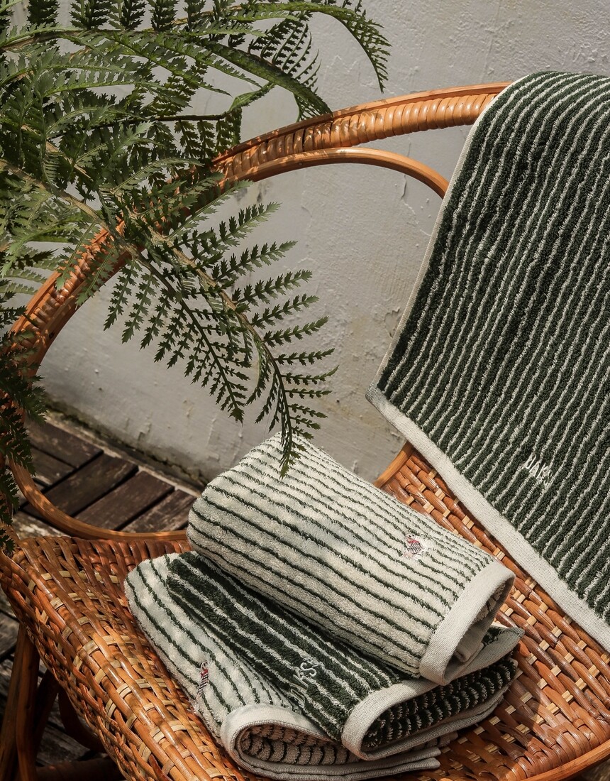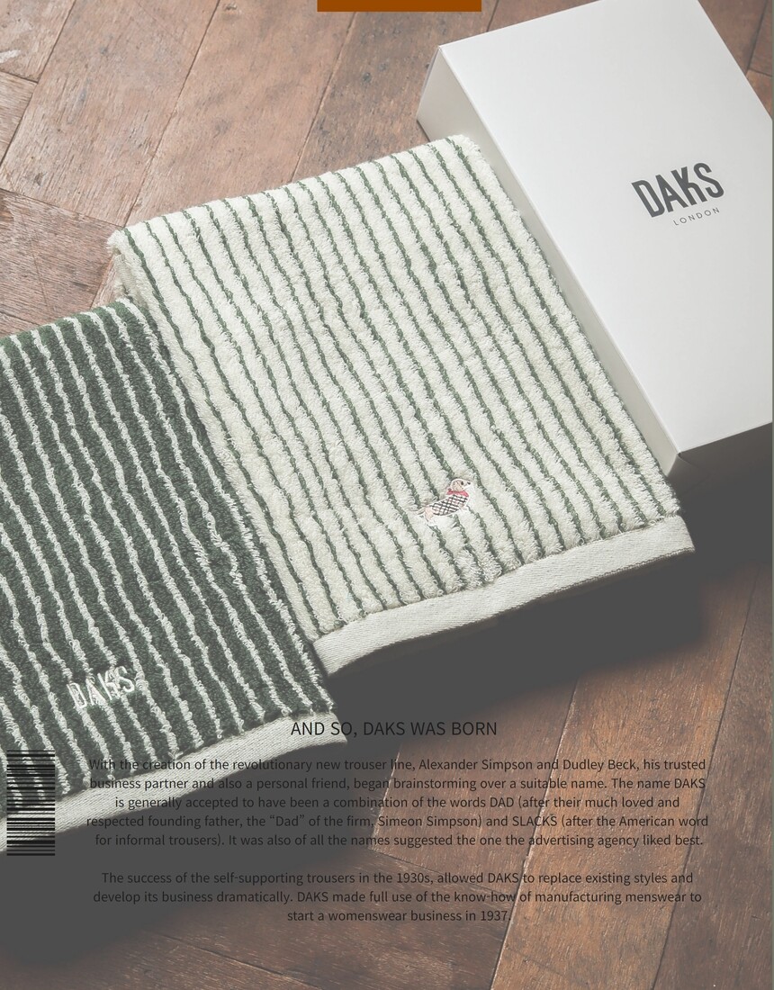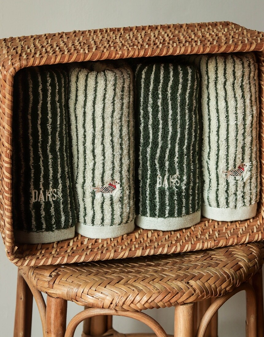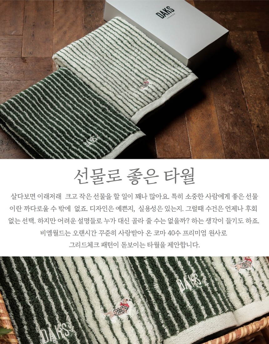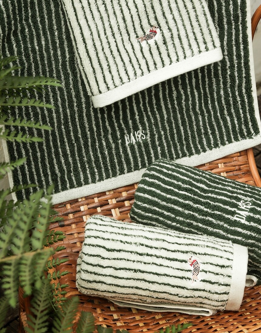 [DAKS] 코마 40수 스트라이프 세면 1매 그린