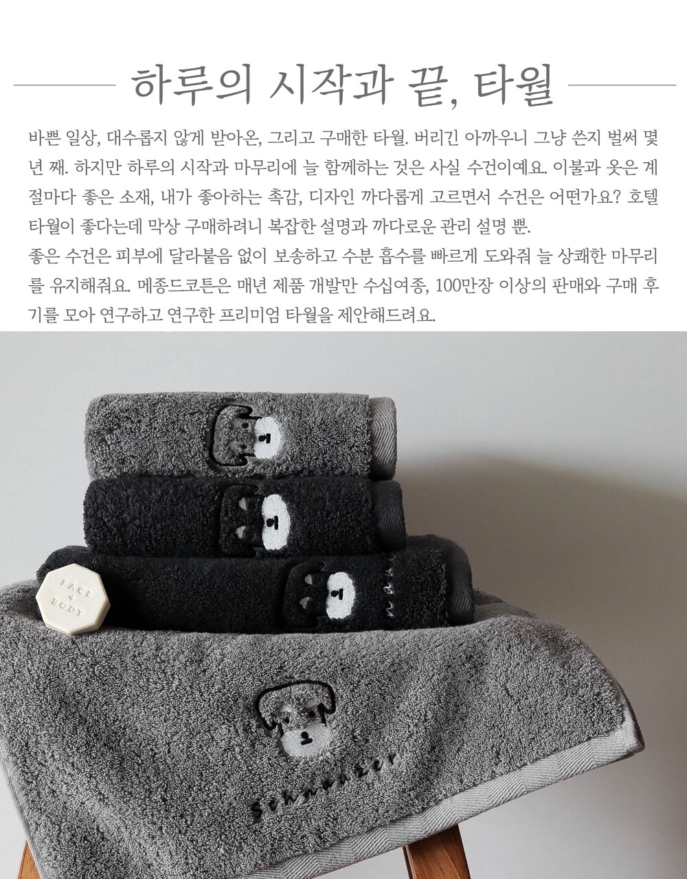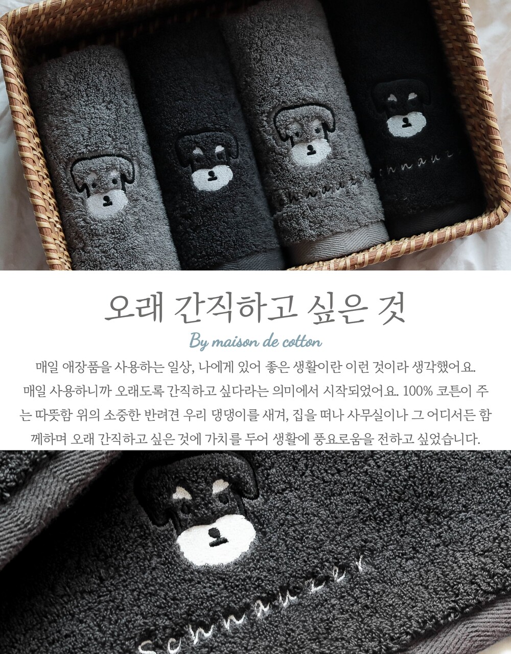 [메종드코튼] 마이펫 슈나우져 호텔타올 1매 다크그레이