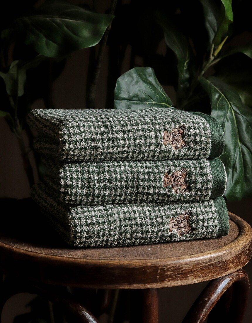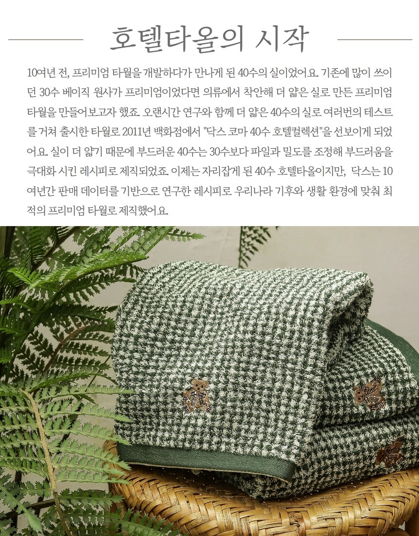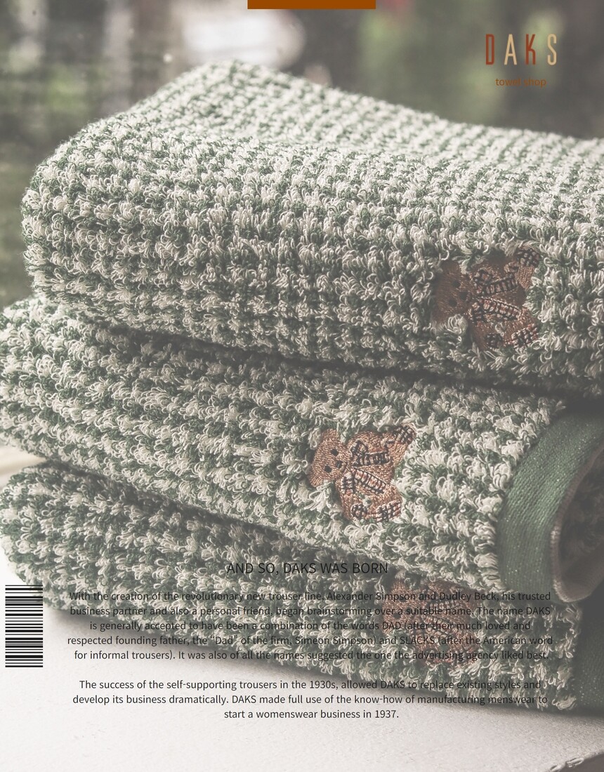[DAKS] 코마 40수 스몰체크 세면 1매 그린