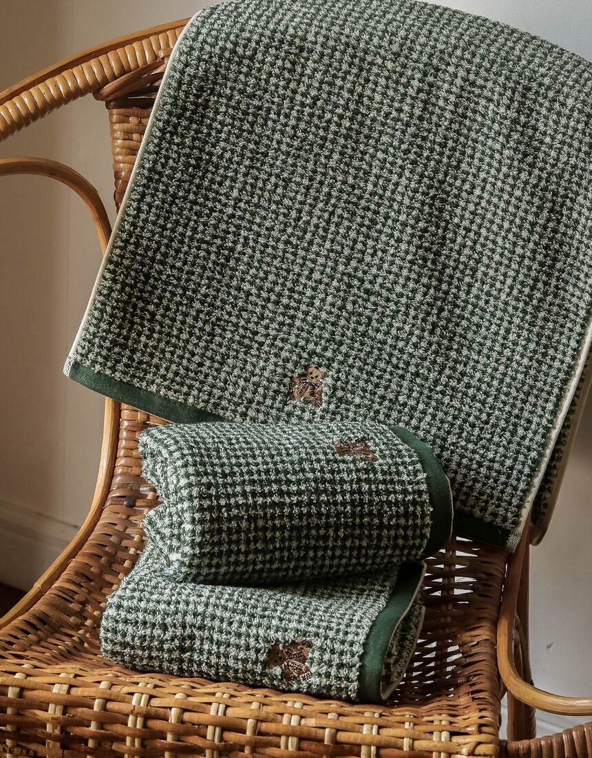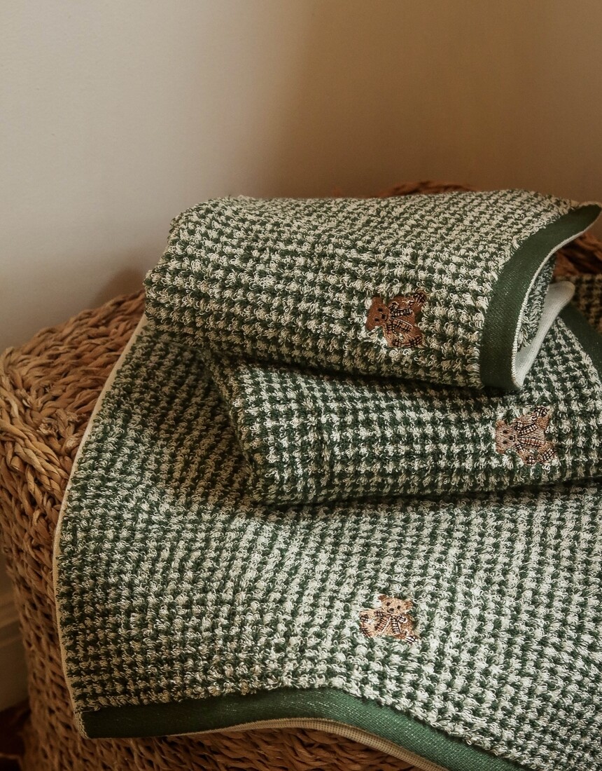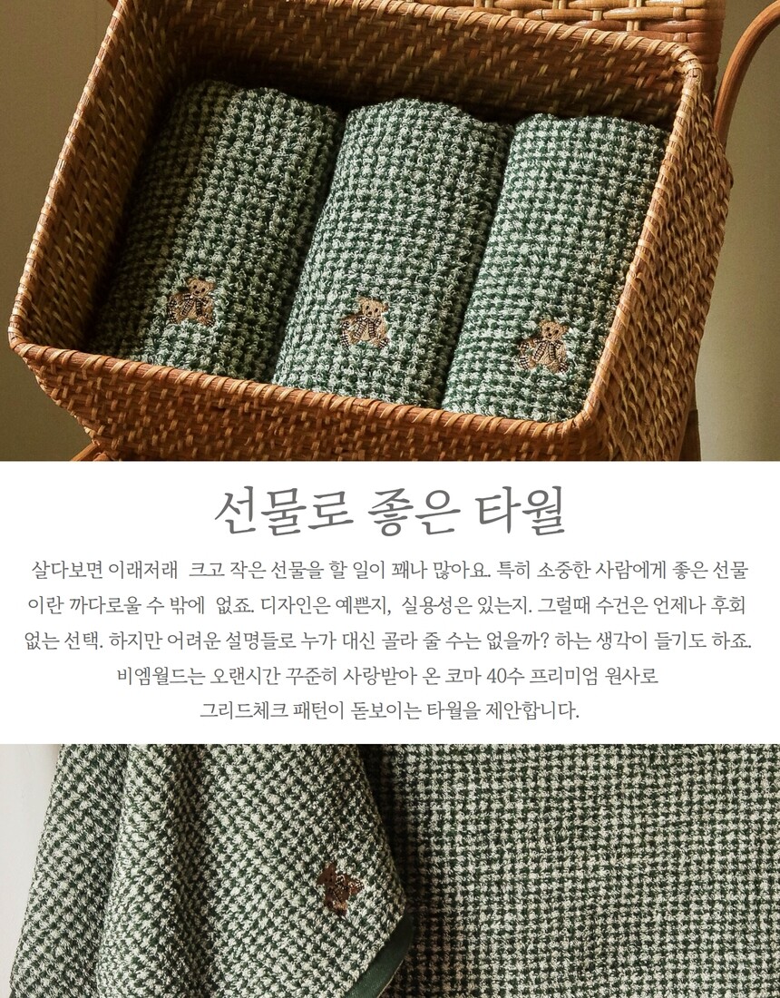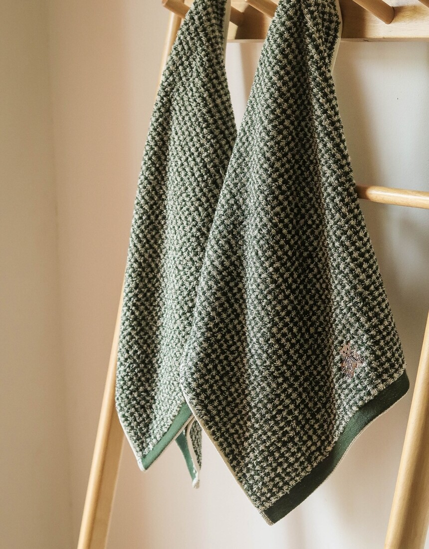 [DAKS] 코마 40수 스몰체크 세면 1매 그린
