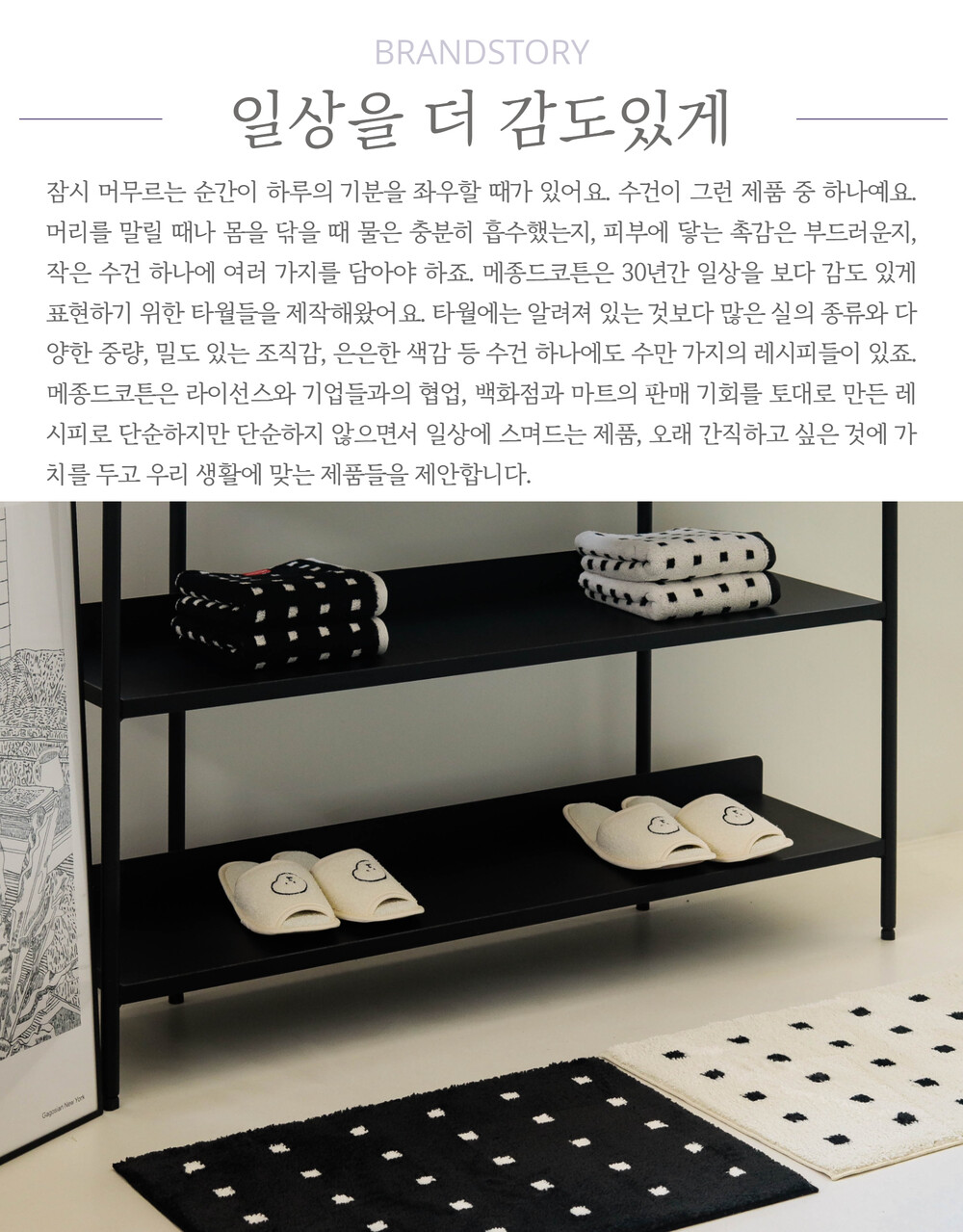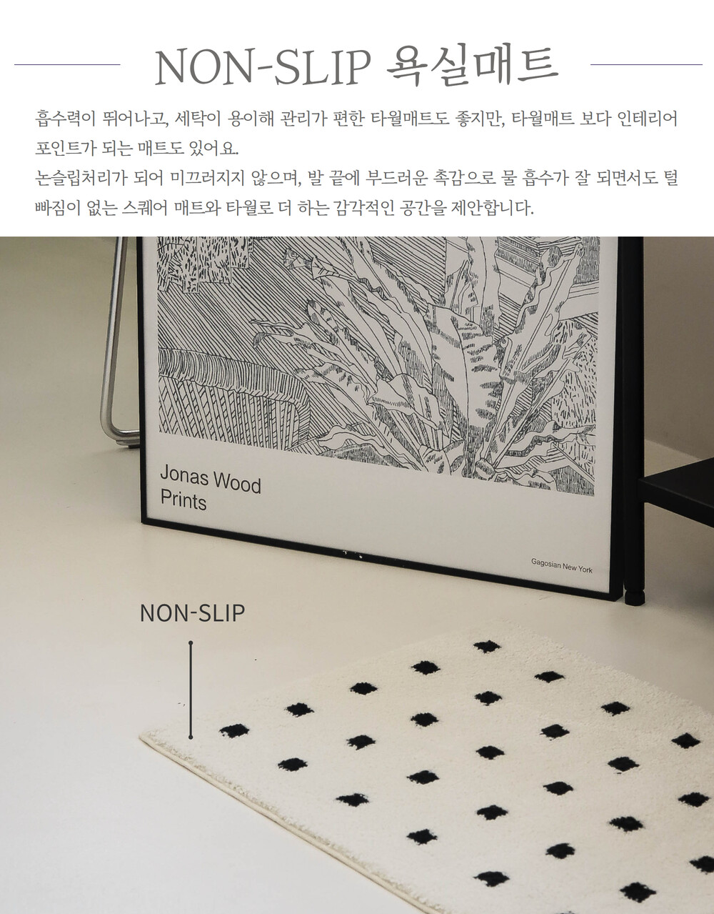 흡수력이 뛰어나고, 세탁이 용이해 관리가 편한 타월매트도 좋지만, 조금 심심한 타월매트 보다 인테리어 포인트가 되는 매트도 있어요.