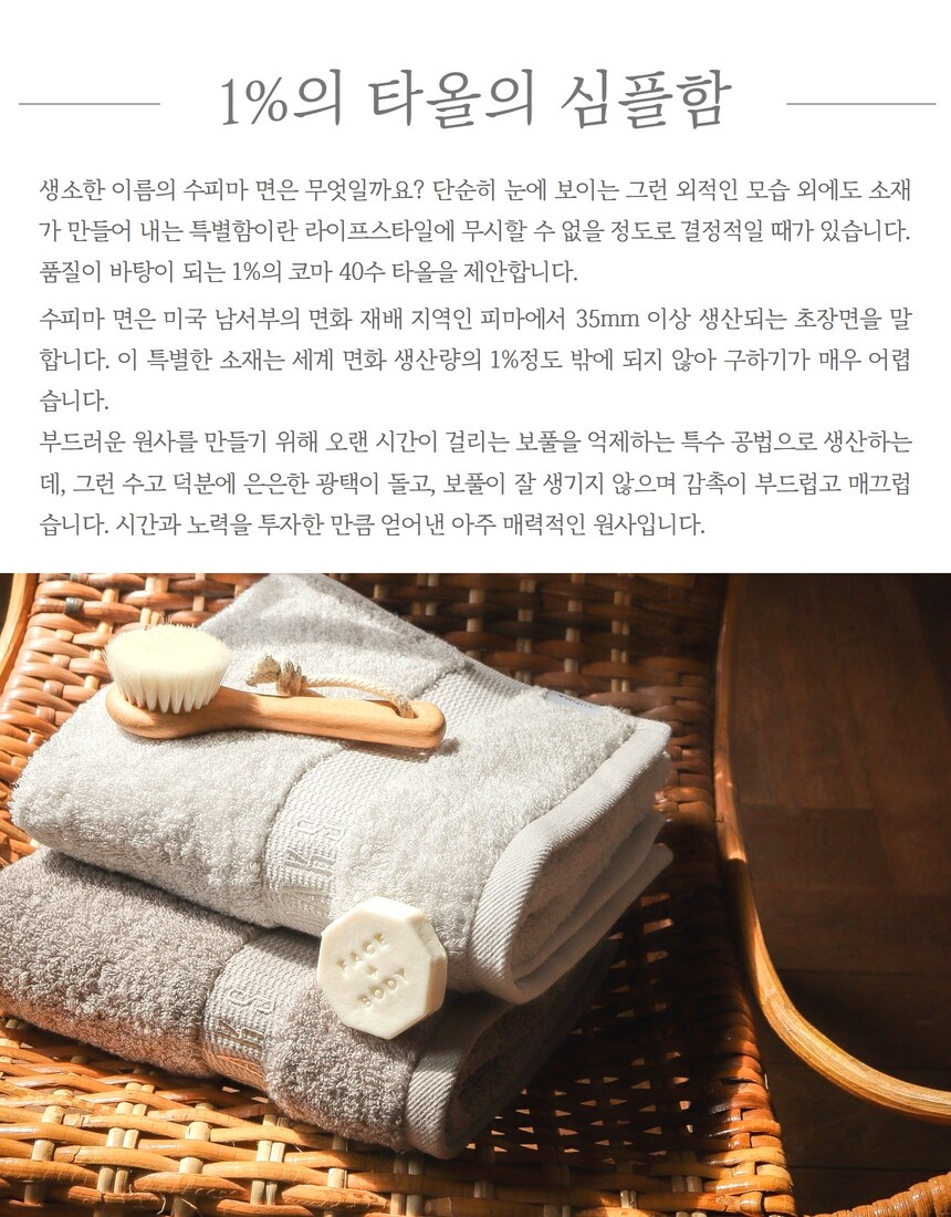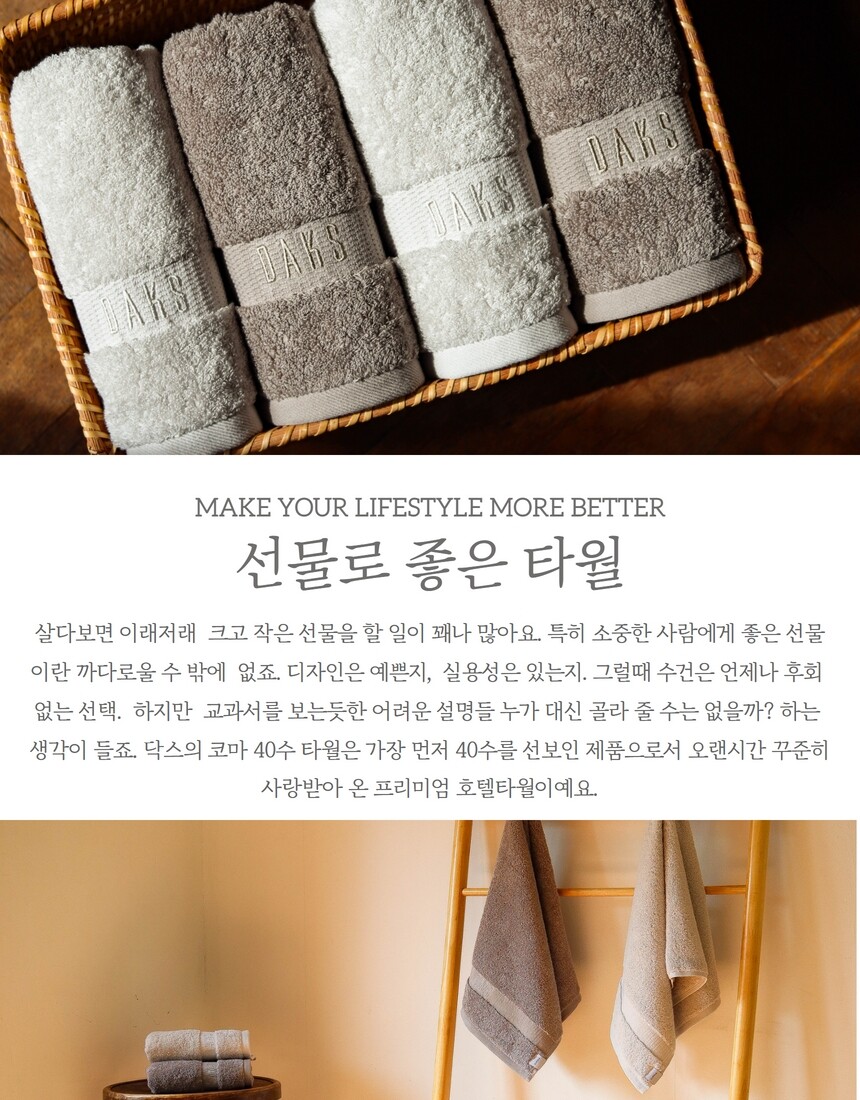 [DAKS] 수피마 코마 40수 세면타올 1매 웜그레이